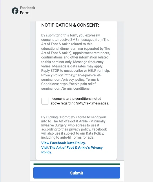 Facebook Lead Form – Opt-In & CTA Flow (A2P Verification)